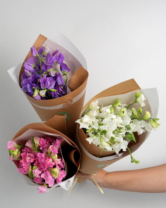 Our beautiful sweet pea bunches are the perfect little bunch to gift to your loved ones, with a subtle fragrance.