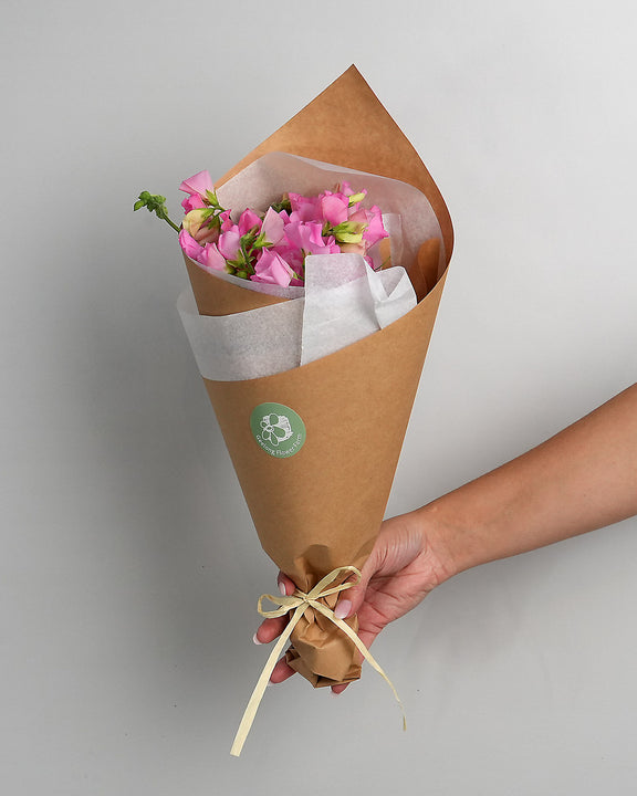 Our everyday blooms come simply wrapped in our signature Brown kraft paper and Raphia.